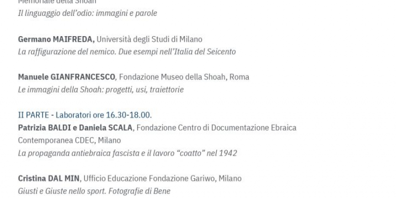 Le immagini della Shoah non sono solo testimonianze: raccontano, influenzano, educano. Il seminario di formazione Le immagini della Shoah tra storia e propaganda propone un percorso di riflessione sul ruolo delle immagini nella costruzione del linguaggio dell’odio e nella memoria della persecuzione. Attraverso interventi e attività laboratoriali, si indagheranno le rappresentazioni dell’odio, la propaganda antiebraica e il ruolo dell’immagine nella costruzione della storia e memoria della Shoah.