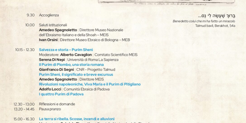 Giovedì 7 maggio il MEIS organizza in collaborazione con il Museo Ebraico di Bologna il convegno “I Purim shenì. L’Italia ebraica celebra la salvezza”.