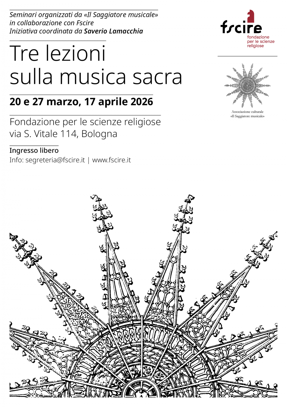 Anche per il 2026 il Saggiatore Musicale e la Fondazione per le scienze religiose collaborano per proporre un ciclo di tre incontri dedicati alla musica sacra con la coordinazione del prof. Saverio Lamacchia, docente di Musicologia e storia della musica presso l’Università di Bologna.