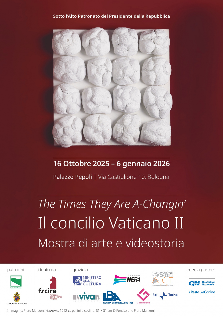 La mostra “The Times They Are A-Changin’. Il Concilio Vaticano II. Mostra di arte e videostoria” sarà visitabile dal 16 ottobre 2025 al 6 gennaio 2026 negli spazi di Palazzo Pepoli – Museo della Storia di Bologna sito in via Castiglione 10.